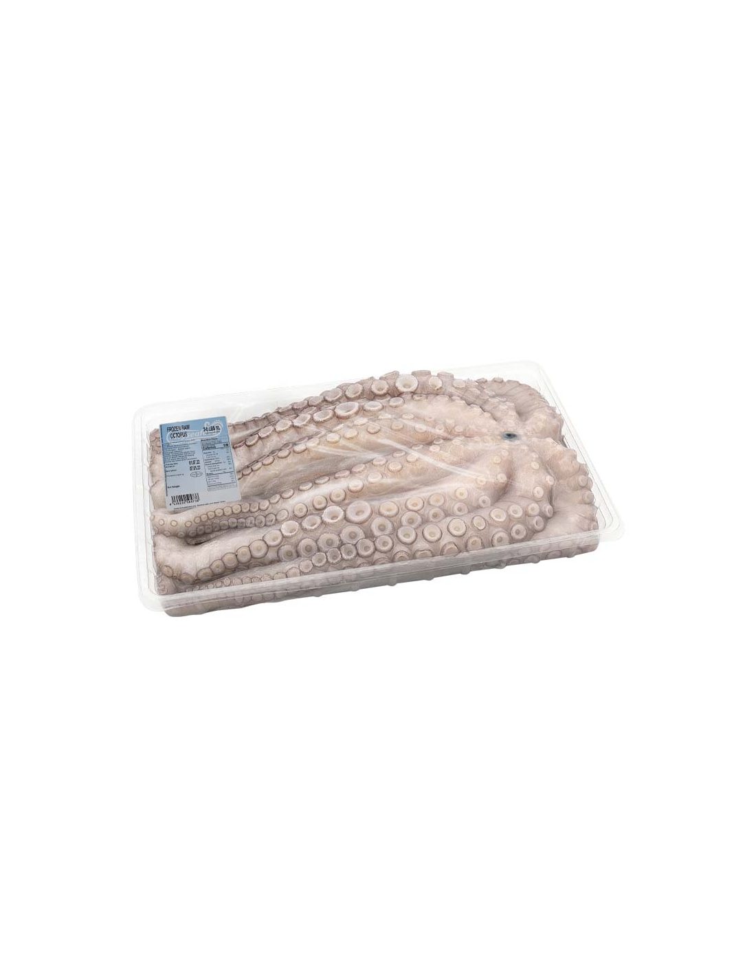 Pulpo (Octopus Vulgaris) entero eviscerado y ultracongelado. Presentado en piezas congeladas individualmente y empaquetadas individualmente, se encuentra envasado al vacío y retractilado con plástico.