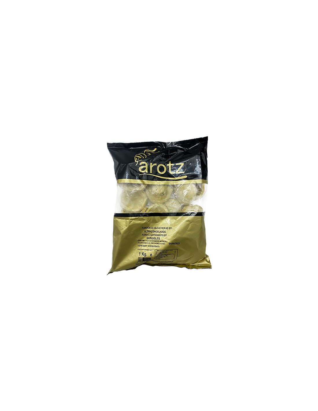 Alcachofas (Cynara scolymus L o Cynara cardunculus L) crudas homogéneas que se preparan a partir de alcachofas jóvenes, tiernas y sanas, sin hojas externas, duras y cortando bien sus hojas centrales hasta obtener los fondos de las mismas, sin hojas laterales o zonas duras, y que tienen tamaño homogéneo, calibradas en unidades de 5 a 7 cm de diámetro.