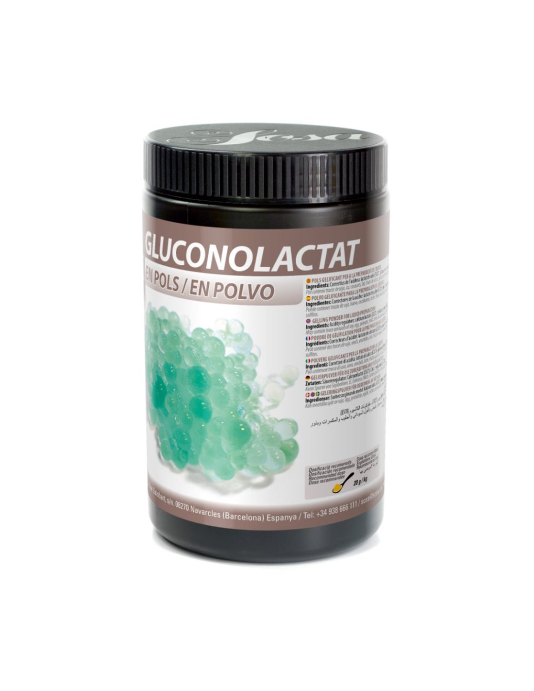 Gluconato cálcico y lactato cálcico. Mezcla de dos sales que nos permiten incorporar calcio a un medio sin aporte de sabor. Ayuda a aportar el calcio suficiente a un líquido para que reaccione con el Alginato y pueda esferificarse.